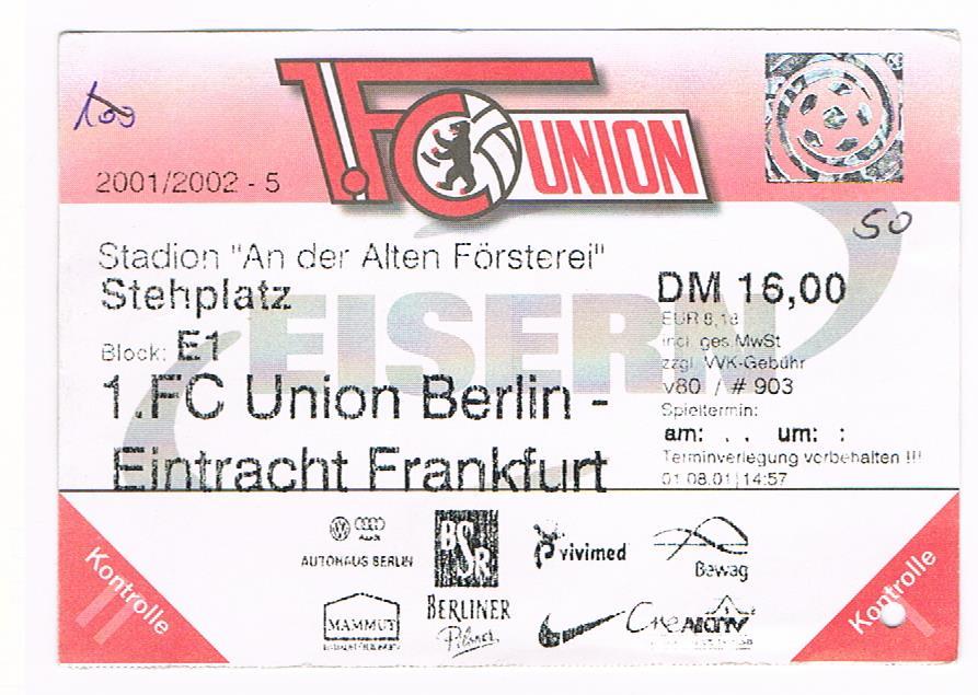 1. FC Union Berlin – Eintracht Frankfurt (0:4) 2. Bundesliga Samstag, 13. Oktober 2001 Stadion An der Alten Försterei, Berlin 14.500 Zuschauer