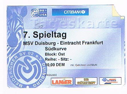MSV Duisburg - Eintracht Frankfurt (1:1) 2. Bundesliga Montag, 24. September 2001 Wedaustadion, Duisburg 7.000 Zuschauer