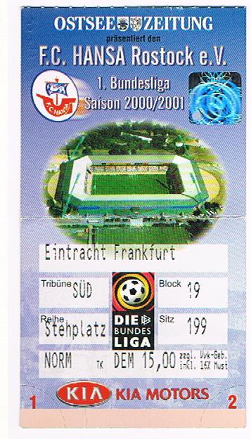 FC Hansa Rostock – Eintracht Frankfurt (0:2) 1. Bundesliga Sonntag, 4. Februar 2001 Ostseestadion, Rostock 12.000 Zuschauer