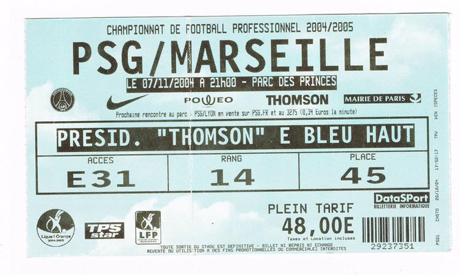 Paris Saint-Germain – Olympique Marseille (2:1) Ligue 1 Sonntag, 7. November 2004 Parc des Princes, Paris 43.131 Zuschauer