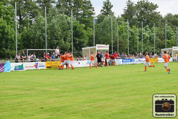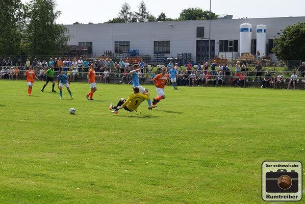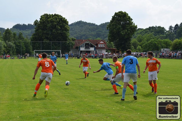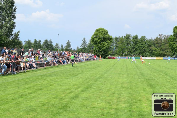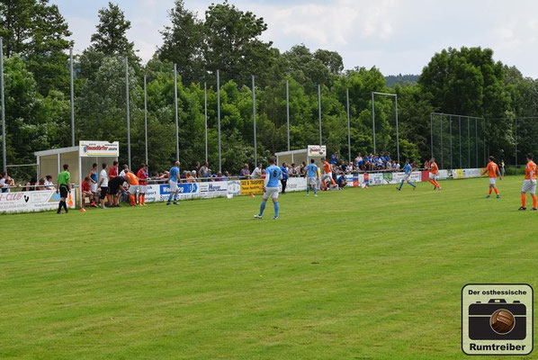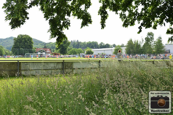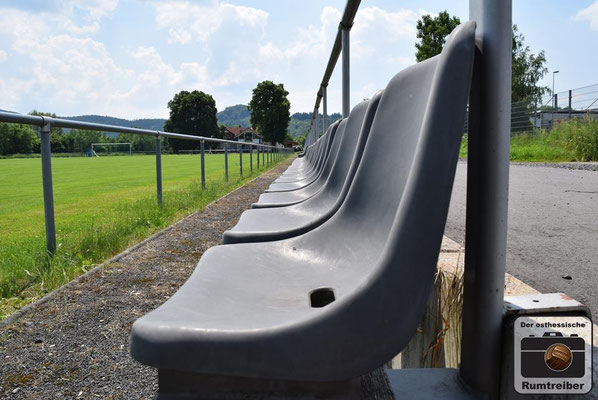 Am vorletzten Spieltag trafen im Spitzenspiel der Kreisliga Westthüringen (Staffel 2) die beiden Titelanwärter im direkten Vergleich aufeinander. Nach einer ersten Besichtigung der Spielstätte dackelte man noch einmal kurz ins Städtchen, um dort einige Impressionen einzufangen. Anschließend ging es schnellen Fußes und durchgeschwitzt zurück zum Stadion, welches wie der Name schon verrät direkt am Fluss „Ulster“ liegt. Eintritt 2 Euro – keine Eintrittskarte. Auf der Flussabgewandten Seite befinden sich 152 handgezählte Sitzschalen, die sich über die gesamte Gerade erstrecken – immermal wieder getrennt durch drei Stufen, welche auf eine Straße führen, von wo man hinter Barrieren stehend über die Köpfe der Sitzenden hinweg ebenfalls dem Treiben auf dem Platz zuschauen kann. Auf der gegenüberliegenden Seite befindet sich zunächst einmal viel Gras, gefolgt von den beiden Reservebänken und zahlreichen in die Jahre gekommenen Sitzbänken aus Holz – sehr schön! Das Vereinsheim liegt etwas zurückgesetzt des Platzes und die darin befindlichen Damen hatten bei der stattlichen Zuschaueranzahl heute alle Hände voll zu tun, um die durstigen Kehlen zu bewirten. Mit Anpfiff entwickelte sich ein taktisch geprägtes Spiel mit vereinzelten Chancen auf beiden Seiten. Von einem Torfestival war man ohnehin nicht ausgegangen und so musste man auch bis zur 44. Spielminute warten, ehe man das „Tor des Tages“ zu sehen bekam. Lautstark unterstützt wurde der FSV Ulstertal Geisa von zahlreichen Fans auf der „Gegengerade“, die ausgestattet mit Megafon und Trommel die komplette Spielzeit ordentlich auf die Pauke hauten! In der zweiten Halbzeit agierte der Gastgeber energischer und drängte auf den Ausgleichstreffer. Letztlich blieb es aber bei den Bemühungen und man musste sich gegen den SV Gumpoldia denkbar knapp geschlagen geben. Der Bratwursttest entfiel heute, da es anschließend nach Philippsthal in den Schlosspark zum dort stattfindenden Oldtimer-Tag ging. Cheeseburger, Hamburger, Bier und Pommes rundeten den Tag angenehm ab.