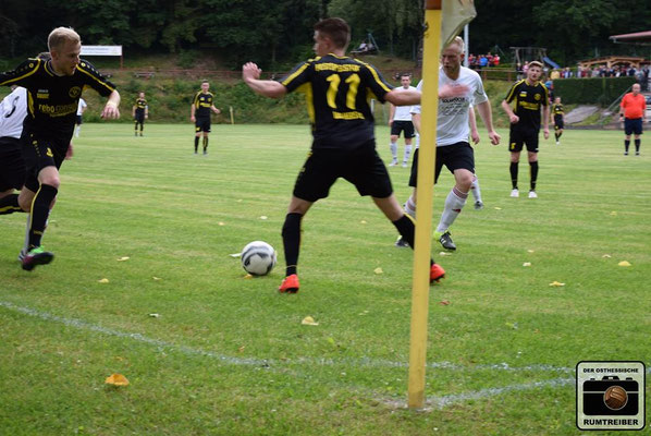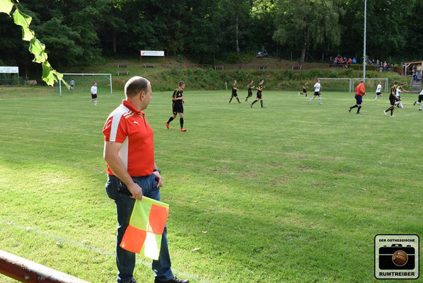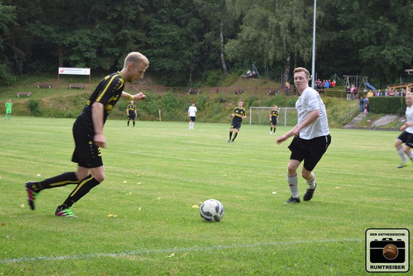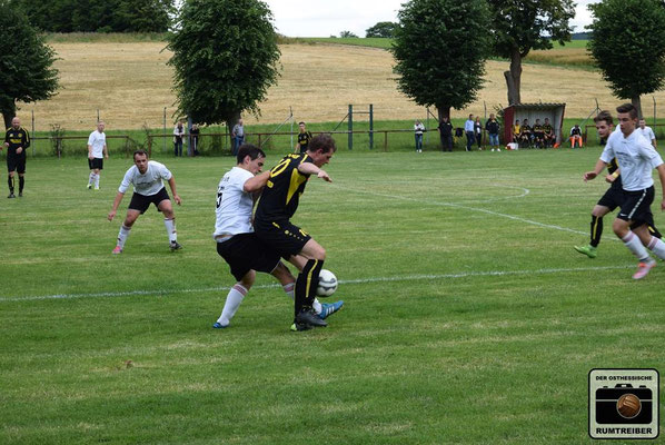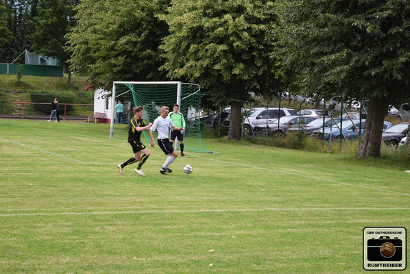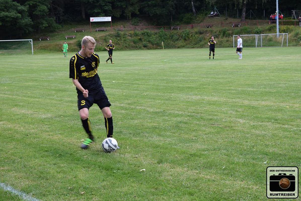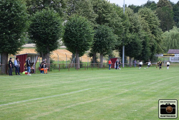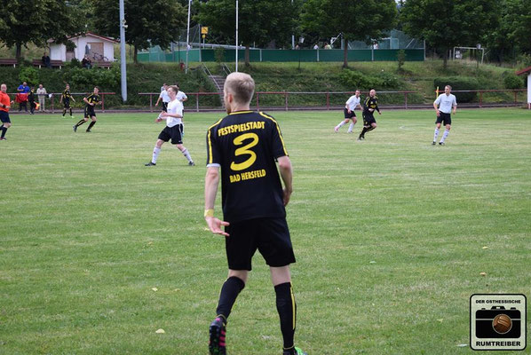 Bitburger für 1,70€. Auf dem Rasen entwickelte sich ein zunächst ausgeglichenes Spiel, demnach dauerte es bis zur 38. Minute ehe der vermeintliche Favorit aus dem Bad Hersfelder Ortsteil Asbach