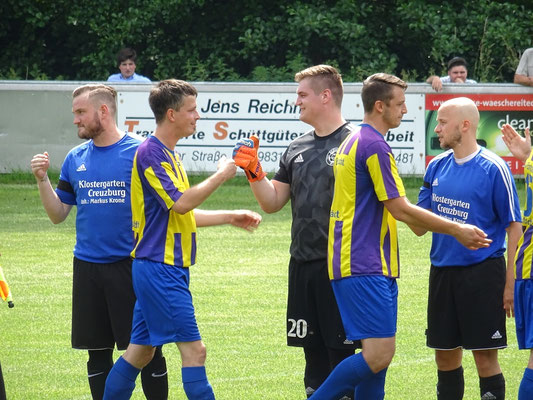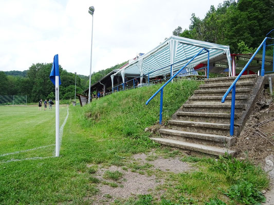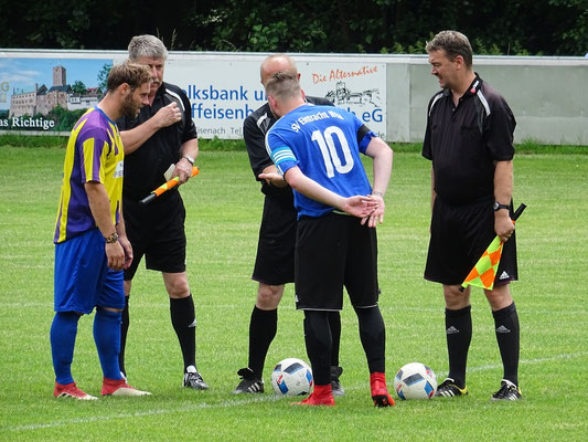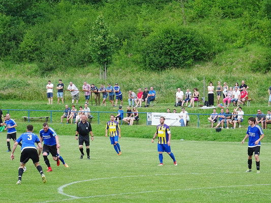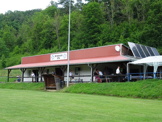 Ein Sonntag im Zeichen der „Eintracht“! Eintracht Ifta, Eintracht Apfelstädt und mit mir auch ein bisschen Eintracht Frankfurt. Frauchen und WauWau wollten nicht mit, da sich für den Nachmittag drei Regentropfen an der hessisch-thüringischen Landesgrenze angekündigt hatten. Am Ende blieb es natürlich trocken, heiß und es gab lecker Kaffee und Kuchen. Da sag ich mal schön „ätschibätschi!“ Die einstündige Fahrt verlief bis auf wenige Orientierungsschwierigkeiten recht störungsfrei und so konnte man die Anlage eine Stunde vor Anpfiff etwas genauer unter die Lupe nehmen, zuvor wurden die drei Euro Eintritt mit einem schönen Eintrittskärtchen aufgewertet. Rechtslastig des Einlasses steht auf einer kleinen Anhöhe das Vereinsgebäude, mit einigen Sitzmöglichkeiten. Dahinter schließen sich auf einem kleinen Wall stehend mehrere Sitzbänke an. Auf der gegenüberliegenden Seite gibt es viele Büsche und das Bächlein „Ifta“ schlängelt sich am Sportplatz vorbei. Vor dem Spielbeginn gab es auf Seiten der Gastgeber zwei Verabschiedungen, sowie eine Schweigeminute. Dann rollte der Ball und es begann ein unterhaltsames und umkämpftes Spiel, welches letztendlich mit neun gelben und einer gelb-roten Karte beendet wurde. Zur Halbzeit führte die Eintracht aus Apfelstädt vor einer ansprechenden Zuschaueranzahl mit 0:1, man selbst gab sich zunächst den Süßspeisen hin und bekam ein leckeres Erdbeerstückchen samt geschmackvollen Kaffee gereicht. Beides für nen Euro, feiner Preis! Da mich aber auch schon die Thüringer Bratwurst (2 €) angelächelt hatte, wollte man diese dann auch nicht länger warten lassen - geschmacklich mal wieder eine glatte 1 mit Sternchen! Wohl gesättigt ging es dann wieder an die Barriere zur zweiten Halbzeit, wo der Linienrichter ein bisschen Regelkunde mit den Zuschauern betrieb. Eintracht Ifta drängte auf den Ausgleich, doch wurden mehrere Chancen liegen gelassen, und wie das dann meistens so ist, schießt der Gegner dann eben das benötigte Tor. Der 1:2 Anschlusstreffer, der nur eine Minute später fiel reichte nicht mehr aus um das Spiel noch zu drehen. Mit Abpfiff ging es in die im Auto befindliche Sauna und über Wommen, Gerstungen und Obersuhl zurück nach Hause. Hier endete meine unterhaltsame fußballerische Urlaubszeit in der Heimat, die ich Mitte der Woche wieder verlassen werde. Ich wünsche allen Freunden und geschätzten Lesern einen schönen Sommer und sage bis die Tage...!