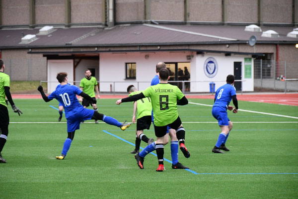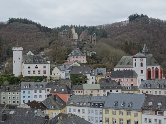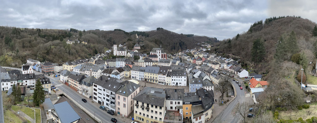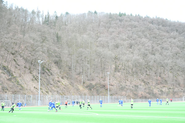 Volles Programm heute für euren werten Schreiber... Los ging es am Nachmittag in Neuerburg. Die Stadt befindet sich in der Ferienregion Felsenland Südeifel, ist aber nach zwanzig Minuten Fahrzeit geschmeidig erreichbar. Das Städtchen macht schön was her, demnach wurde es mal Zeit für ein kleines Kulturprogramm! Zentral geparkt und ab ging die wilde Tourireise. Nach dem Ehrenmal für die in den Weltkriegen gefallenen Soldaten, schlenderte man durch den Stadtpark mit seinen zwei „Wasserfällen“. Vom nahegelegenen „Beilsturm“ hat man einen fantastischen Blick über die Altstadt und derer feinen Fassaden. Über den Marktplatz erreicht man den Aufstieg zur „Burg Neuerburg“, dieser stresste etwas – da scheinbar keine Kondition für derartige Aktionen vorhanden ist. Oben angekommen begegnete mir auch gleich das erste Burgfräulein in einem seltsamen zeitgenössischem Gewand. Drei Bilder später ging es weiter zum Ehrenfriedhof, welcher sich in der Ortsmitte befindet. Auch der „Jakobsweg“ verläuft durch Neuerburg und man überlegte kurz, ob man sich auf den Weg nach Santiago de Compostela machen sollte, frei nach dem Motto „Ich bin dann mal weg“. Da viel mir aber wieder mein Hauptgrund des Stadtbesuches ein... - Fußball!! Und somit wurde die kleine Pilgerreise bis auf weiteres verschoben. Am Auto gabs dann erstmal ne Hoppermahlzeit aus dem Hause „Gut & Günstig“ ehe es weiter zum Sportplatz ging. Auf dem Plastikrasen des Blau-Weiß Neuerburg empfing am späten Nachmittag die dritte Mannschaft der SG Geichlingen die SG Steinchen. Da kein nennenswerter Ausbau vorhanden ist musste man sich tatsächlich aufs Spiel konzentrieren, was bei aller erhabenen Diskretion keine Augenweide war. Das erste Tor fiel kurz vor der Halbzeit, geistig hatte ich mich schon mit ner Nullnummer abgefunden. Halbzeit zwei dann ein bisschen ansehnlicher, wobei die SG Geichlingen ihre Feldvorteile aus der ersten Halbzeit nicht behaupten konnte und schließlich das Nachsehen hatte. Ich sah zu das ich weg kam und machte mich auf die kurze Weiterfahrt zum Kellerduell der Bezirksliga Rheinland West.