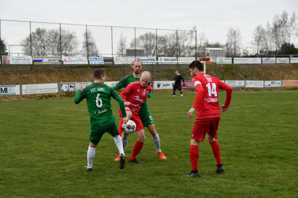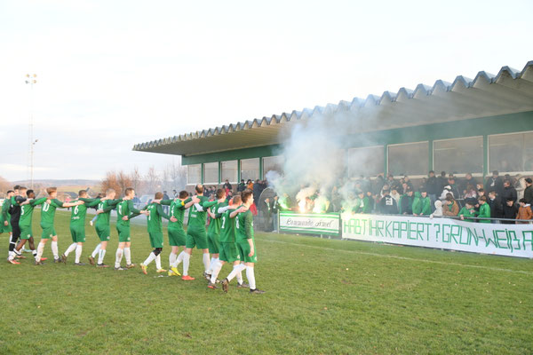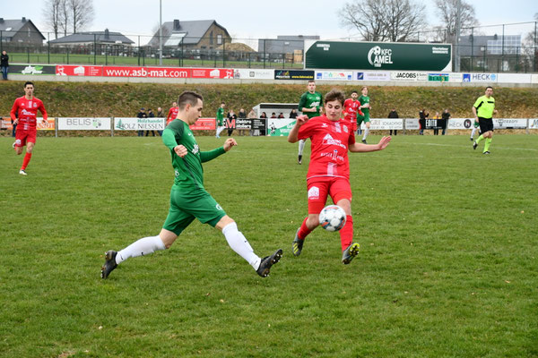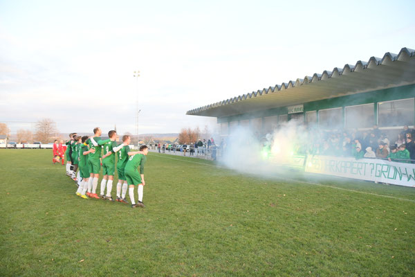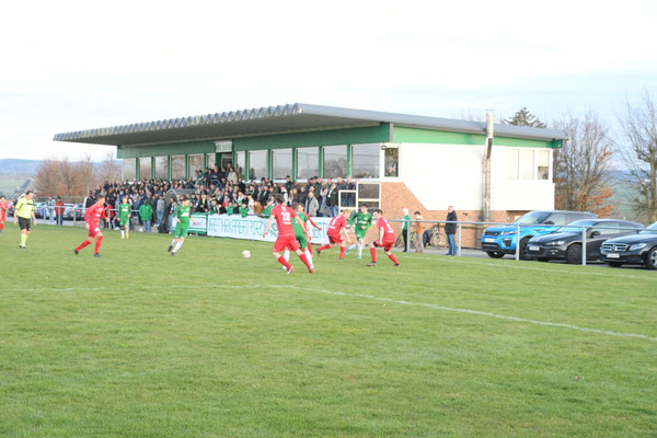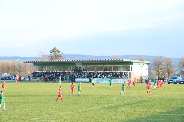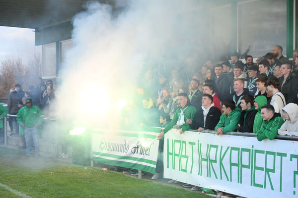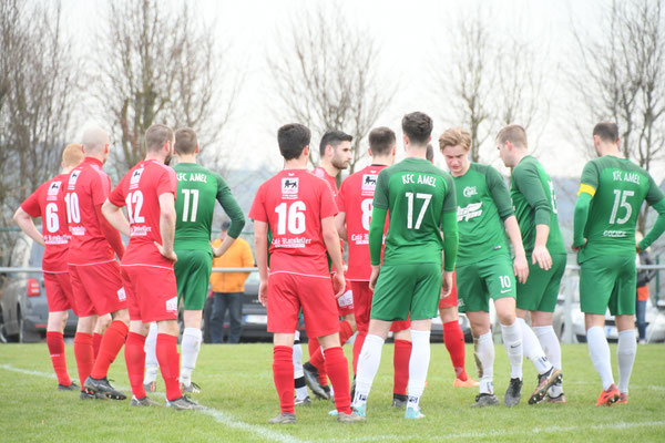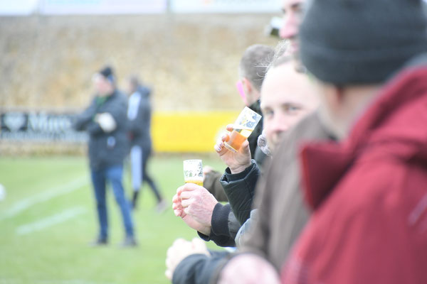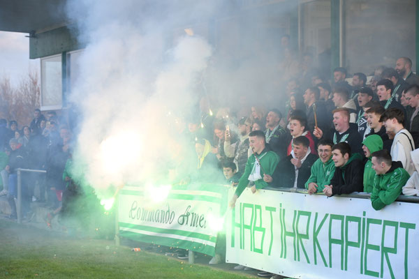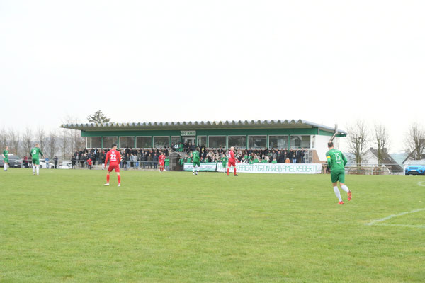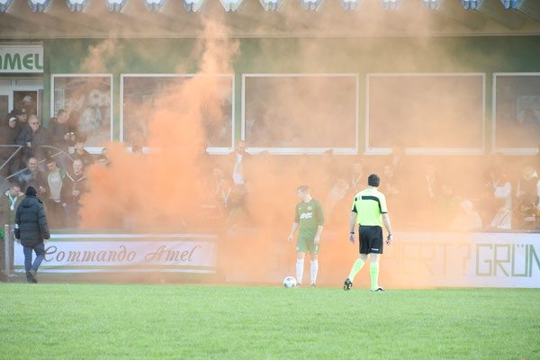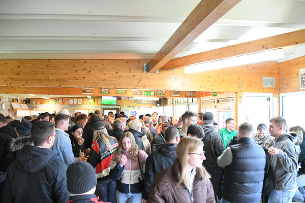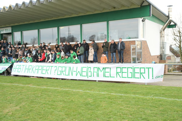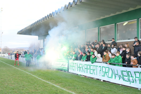 48 Stunden nach dem fulminanten Auftritt des „Commando Amel“ in Malmedy, galt es heute dem grün-weißen KFC Amel einen Besuch abzustatten. Seit Monaten geplant – das heutige Derby gegen Olympia Recht. Beide Stadien trennen lediglich elf Kilometer, demnach sollte für Stimmung unter der kleinen aber feinen Tribüne gesorgt sein. Eintritt für lau, dank freundlichem Kontakt mit dem gastgebenden Verein. Über die gesamte Tribüne ziehen sich drei Stufen, ansonsten nix groß zu sehen im weiteren Umfeld. Erwähnenswert ist allerdings das absolut geniale Vereinsheim mit Graffiti und viel Liebe zum Detail, massenhaft Bilder, Wimpel und Wurstwaren. Selten so was geiles gesehen in Belgien! Mit Anpfiff entwickelte sich nen ansprechendes Spiel und der heimische KFC ging zur Freude der zahlreichen Zuschauer in der 20. Spielminute in Führung. Aus Recht waren wohl auch ein paar da – aber sehr unauffällig! Zu diesem Zeitpunkt wusste man noch nicht, dass das 1:0 bereits das Tor des Tages war, demnach war auf Seiten des KFC Amel bangen und zittern bis zum Schlusspfiff angesagt. Zu Beginn der zweiten Halbzeit gabs ein paar Rauchtöpfe zu bestaunen und die anschließende Siegesfeier mit der Mannschaft wurde mit grünen Bengalos zelebriert. Top Sache, top Abend! Ich verabschiedete mich und machte mich auf den Weg zur mir empfohlenen besten Friture Ostbelgiens. Diese will natürlich auch beim Namen genannt werden: Fritüre Peters – und ich wurde nicht enttäuscht! Freundliche Bedienungen und nettes gemütliches Ambiente. Frikandel und Fritten mal mit Messer und Gabel zu essen, is auch mal was neues! Mit der Abenddämmerung ging es dann zurück auf die Straße und heimwärts.