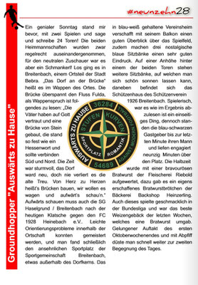 Erstens kommt es anders und zweitens als man denkt... Leider zerfetzte mir die dritte Mannschaft der FSG Jossatal meine Sonntagsplanung, da sie nicht zu ihrem Auswärtsspiel bei der SG Cornberg/Rockensüß antrat. Demnach nen bisschen Chaos am Vormittag, ehe man den Entschluss fasste mal wieder bei meinen Freunden in Alheim-Heinebach vorbeizuschauen. Guter Kompromiss, da es bis zum nächsten anvisierten Spiel am Nachmittag nur fünf Kilometer sein sollten. Aus dem Kompromiss wurde ein genialer Tag, den man demnach auf der Günter Klose Sportanlage begann. Namensgeber ist der ehemalig Bürgermeister des Dorfes, welcher mit 2400 Einwohner der größte Ortsteil der Gemeinde Alheim ist. Auch sportlich tut sich seit den zwanziger Jahren viel in Heinebach, denn am 22.03.1928 wurde der glorreiche FC 1928 Heinebach e.V. in der Gastwirtschaft Ritter durch zwanzig sportbegeisterte Mitglieder gegründet. Seit dem ist viel geschehen und wie auch jeder andere Verein hatte man mit Höhen und Tiefen zu kämpfen. Neuste Errungenschaft ist ein neuer Rasen, welcher vor zwei Jahren angelegt wurde. Weitere Investitionen in die Gestaltung der Sportanlage verschlangen einen mittleren fünfstelligen Betrag, welcher hauptsächlich aus der Bandenwerbung finanziert wurde. „Mit Eintritt und Würstchen ist nix mehr zu verdienen“, berichtet mir Andreas Möller, der mit viel Herzblut und Engagement bei der Sache ist. Heute wedelt er in der ersten Halbzeit an der Seitenlinie mit der Linienrichter-Fahne, ehe wir im zweiten Durchgang unser Gespräch etwas vertiefen können. Die in rot gekleideten Gastgeber erfüllten indes ihre Aufgabe auf dem Platz und konnten einen 3:1 Heimsieg verbuchen. Bedanken möchten wir uns hiermit für die heutige Gastfreundschaft samt der kulinarischen Verköstigung und dem erneuten abdrucken eines meiner Spielberichte im Stadionheft „Heimspiel“. Mit Abpfiff düsten wir davon und machten uns zum 100. Spiel im laufenden Kalenderjahr.