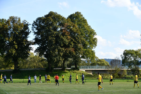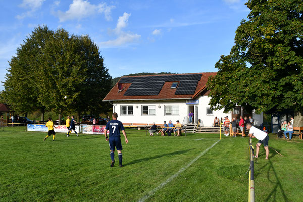 Mit dem TSV Baumbach ging es heute Nachmittag zu einem weiteren Sorgenkind der Kreisliga A1 Hersfeld/Rotenburg. Abgeschlagen am Tabellenende traf man heute auf die spielstarke SG Cornberg/Rockensüß/Königswald, die als Tabellendritter anreiste. Der Sportplatz am Bahnhof ist ein idyllisches Teil und befindet sich etwas außerhalb der Ortschaft am ehemaligen Haltepunkt der Bahnstrecke Bebra–Baunatal-Guntershausen. Verrammelte Barrieren und drei ebenso schön heruntergekommene Sitzbänke sorgen für viel Charme. Das Vereinsheim macht fein was her und präsentiert sich ebenfalls mit einigen Sitzbänken. Unter einem schattenspendendem Kastanienbaum ist eine gemütliche Sitzbank verbaut, davor trifft sich jung und alt zum Weizenbiergenuss. Spielerisch wars nen eindeutiges Ding und die gelb-schwarzen Gastgeber kassierten die zweite 0:9 Klatsche in Folge. Zur Halbzeit gabs ne solide Bratwurst, welche uns vom Grillmeister am Rande des vorbeiführenden Fulda-Radweges überreicht wurde. Auch vorbeifahrende Radler machten von diesem Angebot Gebrauch, somit konnte der heutige Bratwurstverkauf noch etwas gesteigert werden. Mit Abpfiff freuten wir uns dank der Neutralität über neun sehenswerte Treffer und machten uns auf die Rückfahrt.