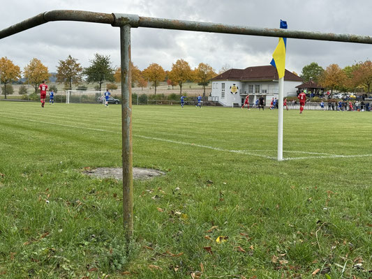 Einmal mehr, war es mir nicht gegönnt den „Oberen Sportplatz“ in Burghaun-Steinbach einzutüten... Vielen Dank, fussball.de für die mal wieder desolate Spielortansetzung! Sportliche Abhilfe gab es demnach mal wieder im thüringischen Sperrbezirk und da der Ground in Geismar nun auch schon ewig vor mir hergeschoben wird, waren die Tränen schnell getrocknet. Laut Wiki is die Bude einer der schönsten Sportplätze des Kreises, was euer Droog und Schreiber abschließend bestätigen kann! Ein paar Stufen und Sitzplatzmöglichkeiten begrüßen den Nerd an der Seitenlinie und lassen den Nachmittag zufriedenstellend vergehen. Der Kick war ebenso schmackhaft, wie die heimische Bratwurst auf die es volle Punktzahl gab. Viel Geschrei und Pöbelei rundeten das spannende Spielgeschehen ganz gut ab, in der die heimische Elf am Ende die Oberhand behielt. "Sport frei!"