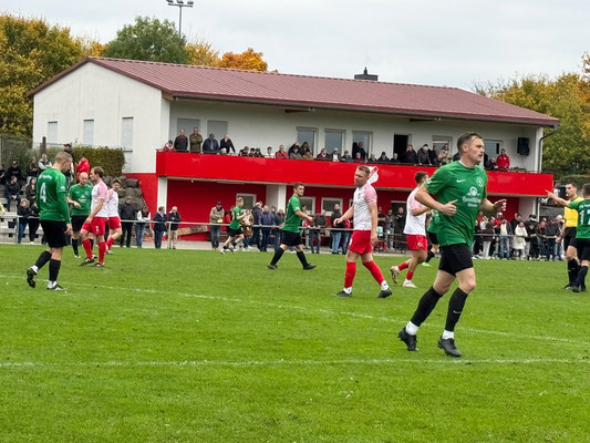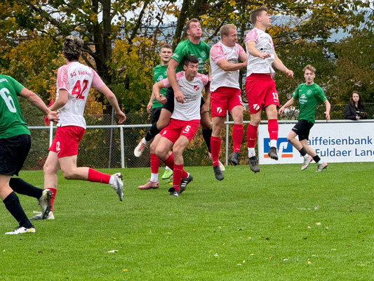 Zum Spitzenspiel der Gruppenliga Fulda sollte es heute endlich nach Sickels gehen! Beide Aufsteiger spielen eine glänzende Hinrunde und belegen derzeit den 5. und 4. Tabellenplatz. Für nen Fünfer betrat man die gut gefüllte „Käsbachkampfbahn“ oberhalb der Ortschaft und erfreute sich an dem vorherrschenden Bratwurstduft, sowie einigen hohen verbauten Stufen am Rande des Vereinsgebäudes. Nach dem ersten obligatorischen Routinecheck erfolgte sogleich der Anpfiff des Unparteiischen, welcher heute Nachmittag wohl lieber entspannt auf dem Sofa gelegen hätte. Eine umkämpfte Partie erlebten die rund dreihundert Zuschauer von der ersten Minute an, in der die Gäste der FSG Vogelsberg mit dem Halbzeitpfiff in Führung gehen konnten. Sodann erstürmte man das reichhaltige Kuchenbuffet und zog sich nen leckeren Fuldaer Fettschlauch samt tagesfrischen Brötchen in die Mundwinkel. Die Geschmacksnerven vergaben Bestnoten und auf dem feuchten Geläuf kämpfte der Gastgeber engagiert um den Ausgleichstreffer. Dieser durfte in der 82. Spielminute bejubelt werden und mit Abpfiff zog man dann zufrieden und gesättigt ab. Fulda-Sickels, sollte jedem Fußball-Enthusiasten eine Reise wert sein und beiden Mannschaften wünsche ich weiterhin eine erfolgreiche Saison!